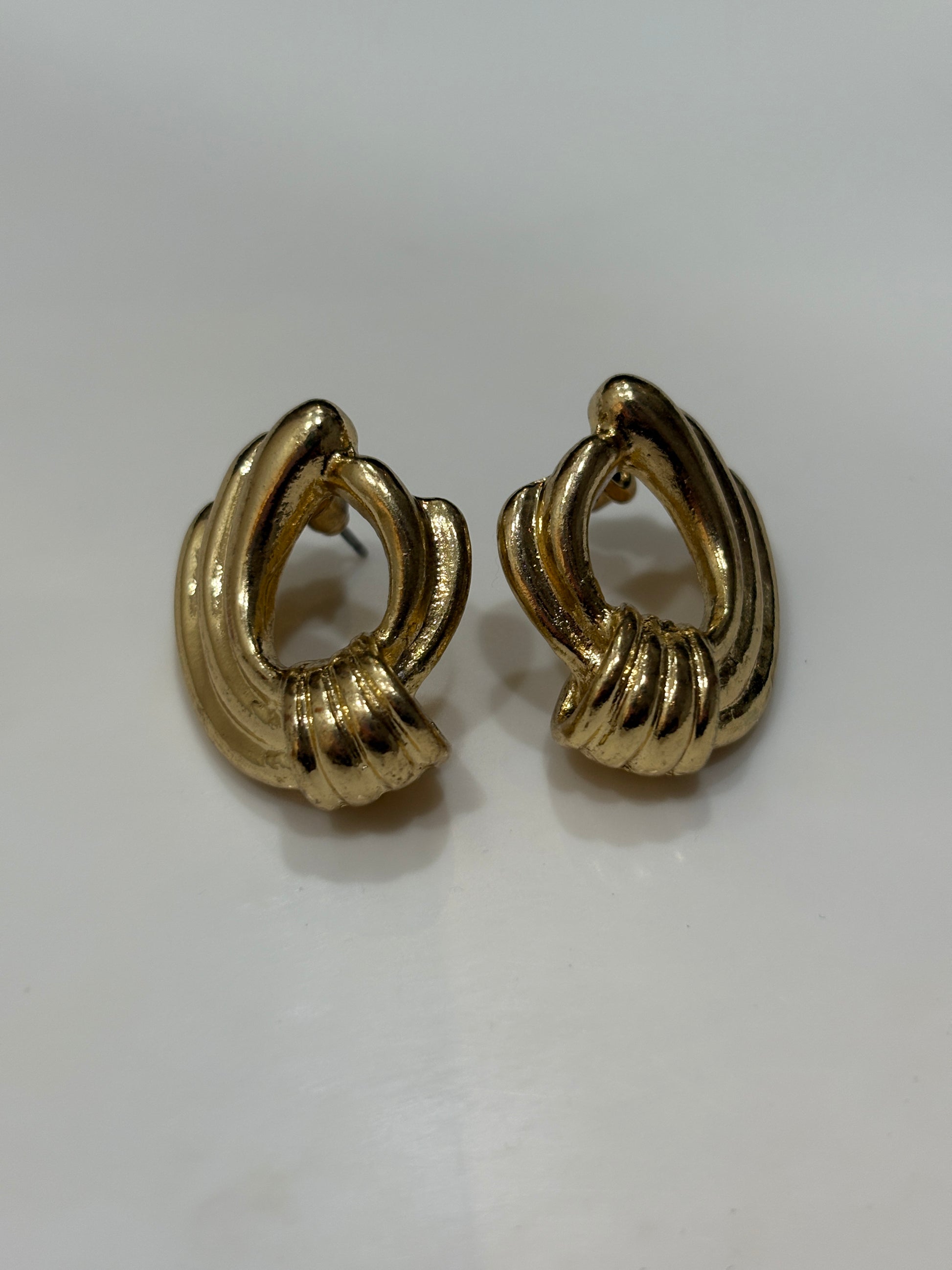 A regal fusion of elegance and strength, these golden studs are designed with a bold knot motif that resembles a royal crown. Perfect for making a statement, they symbolize power, grace, and timeless charm — the ideal piece to crown your everyday or festive look.